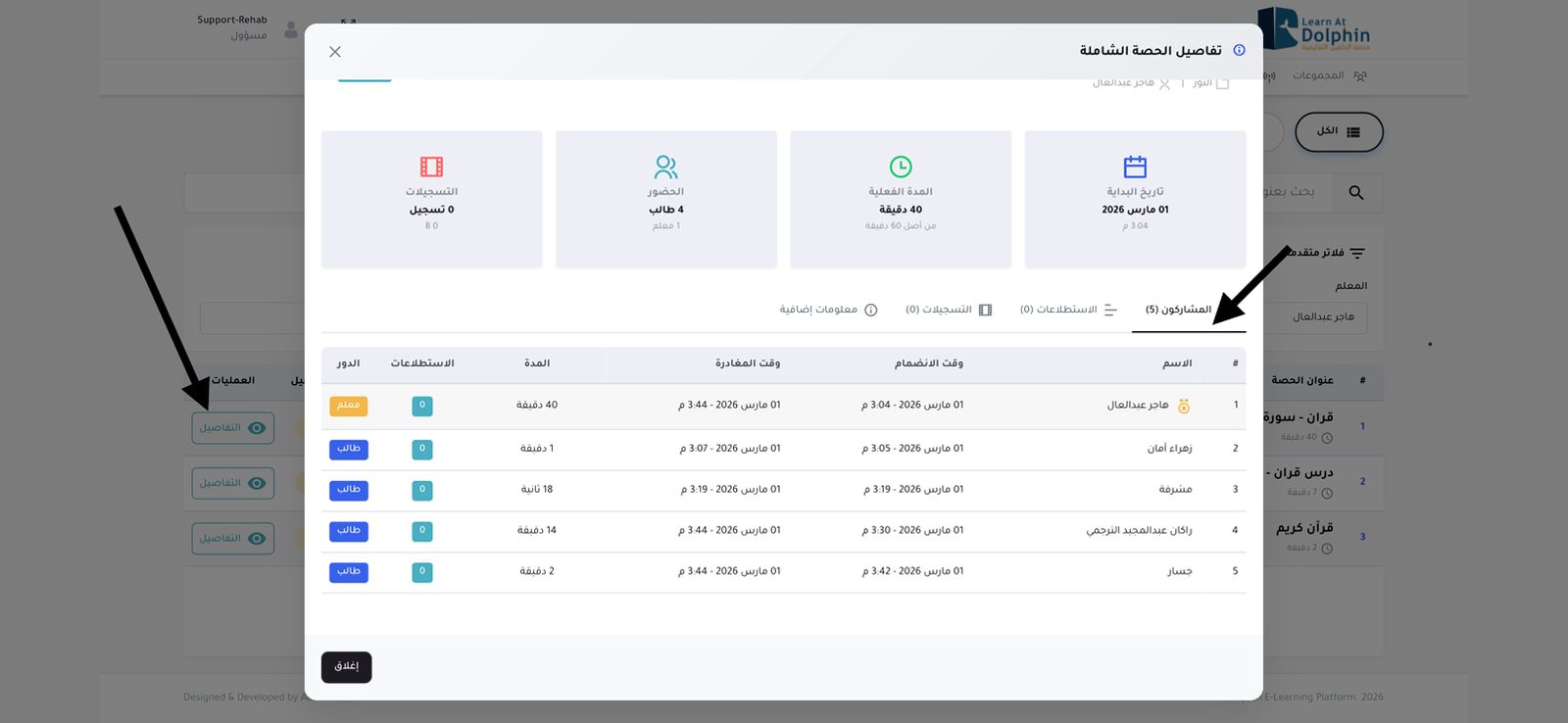 • يمكن الحصول علي الحصة المسجله من خلاله و عمل جلب لأي تسجيل غير ظاهر