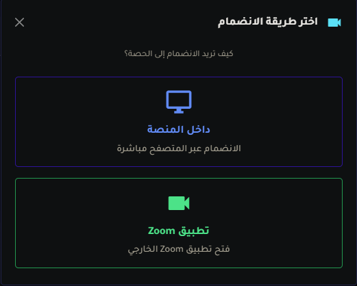 حل تلك المشكلة هو دخول القاعة عن طريق تطبيق Zoom ،كما هو موضح بالصورة