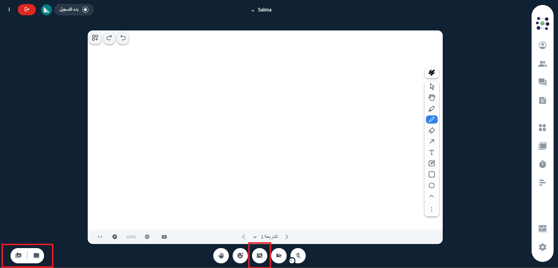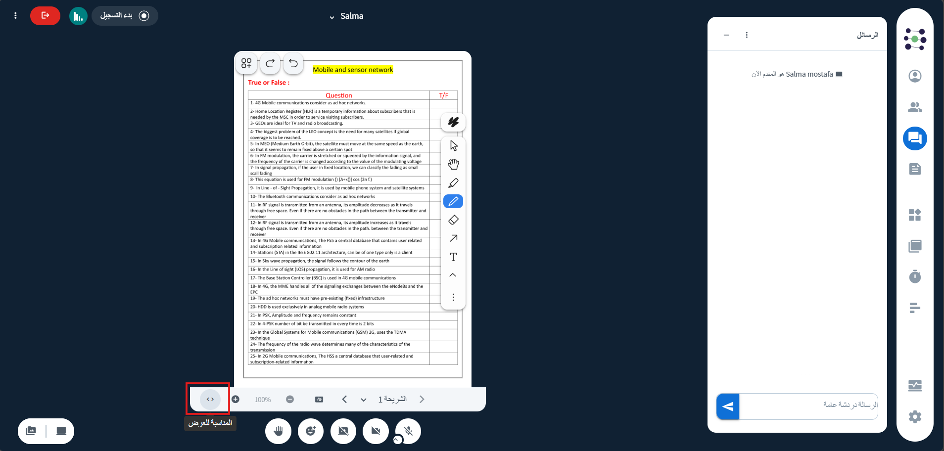 ويمكن للمقدم استخدام هذه الأدوات للكتابة أو التوضيح أو الرسم مباشرة على المحتوى المعروض لشرح النقاط المهمة بشكل أوضح.