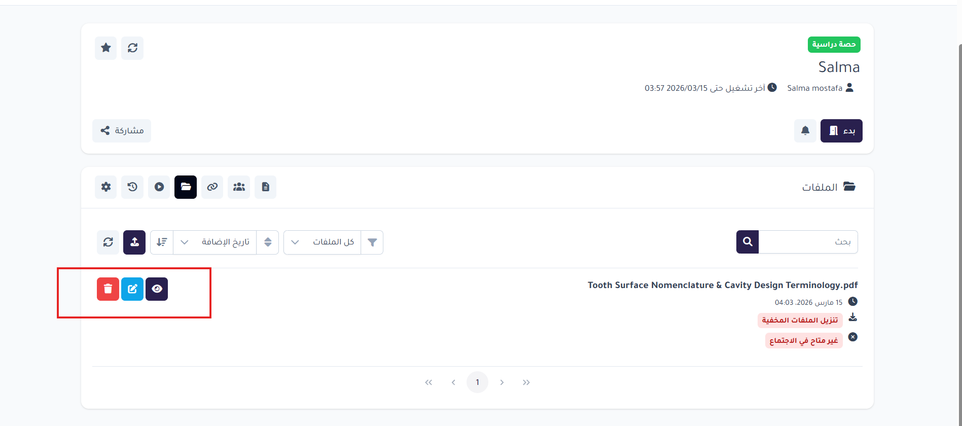 عند مشاركة ملفات مثل PDF أو الصور وقد تظهر بحجم صغير داخل الشاشة، يمكن استخدام خيار مناسبة للعرض لتكبير المحتوى تلقائياً ليتناسب مع حجم الشاشة، مما يساعد على عرض المحتوى بشكل أوضح للطلاب.