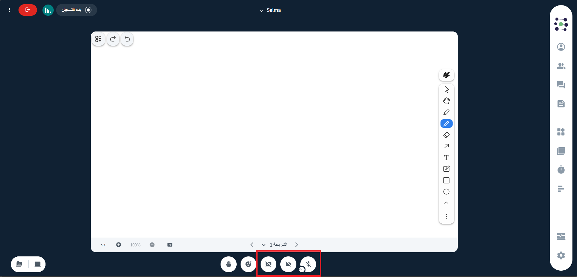 في حال عدم تفعيل الصوت، سيتم دخول القاعة على وضع المستمع فقط دون القدرة على التحدث.