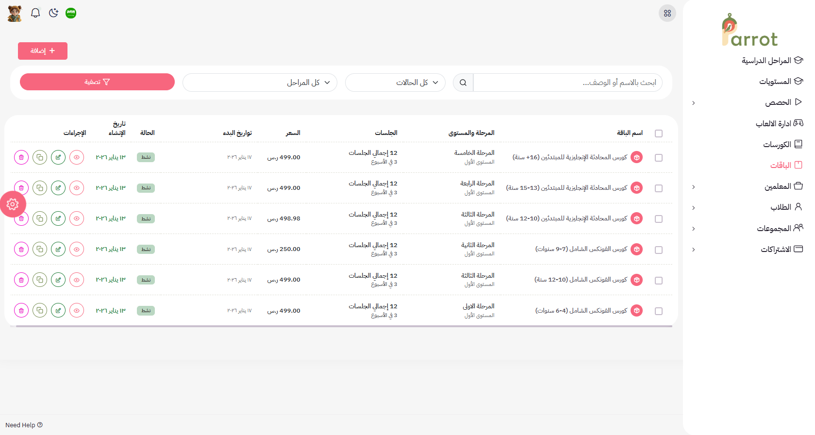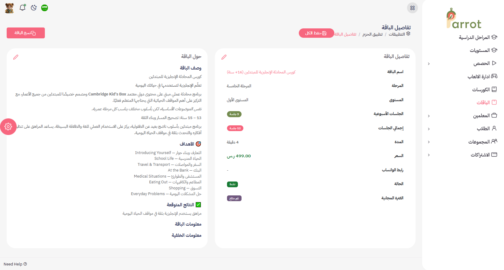 من لوحة التحكم » الباقات