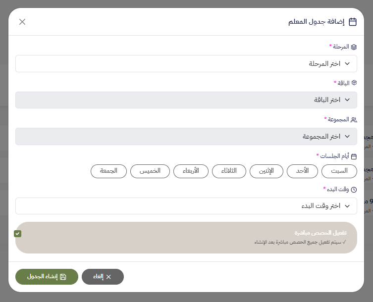 إنشاء مجموعة جديدة واسنادها الي المعلم: