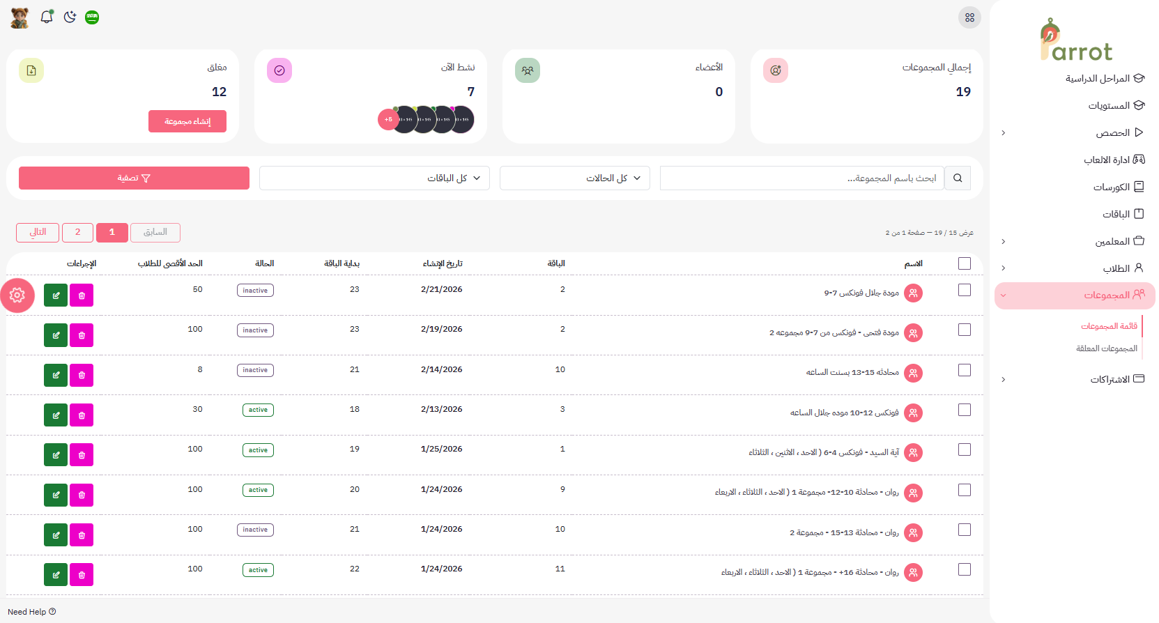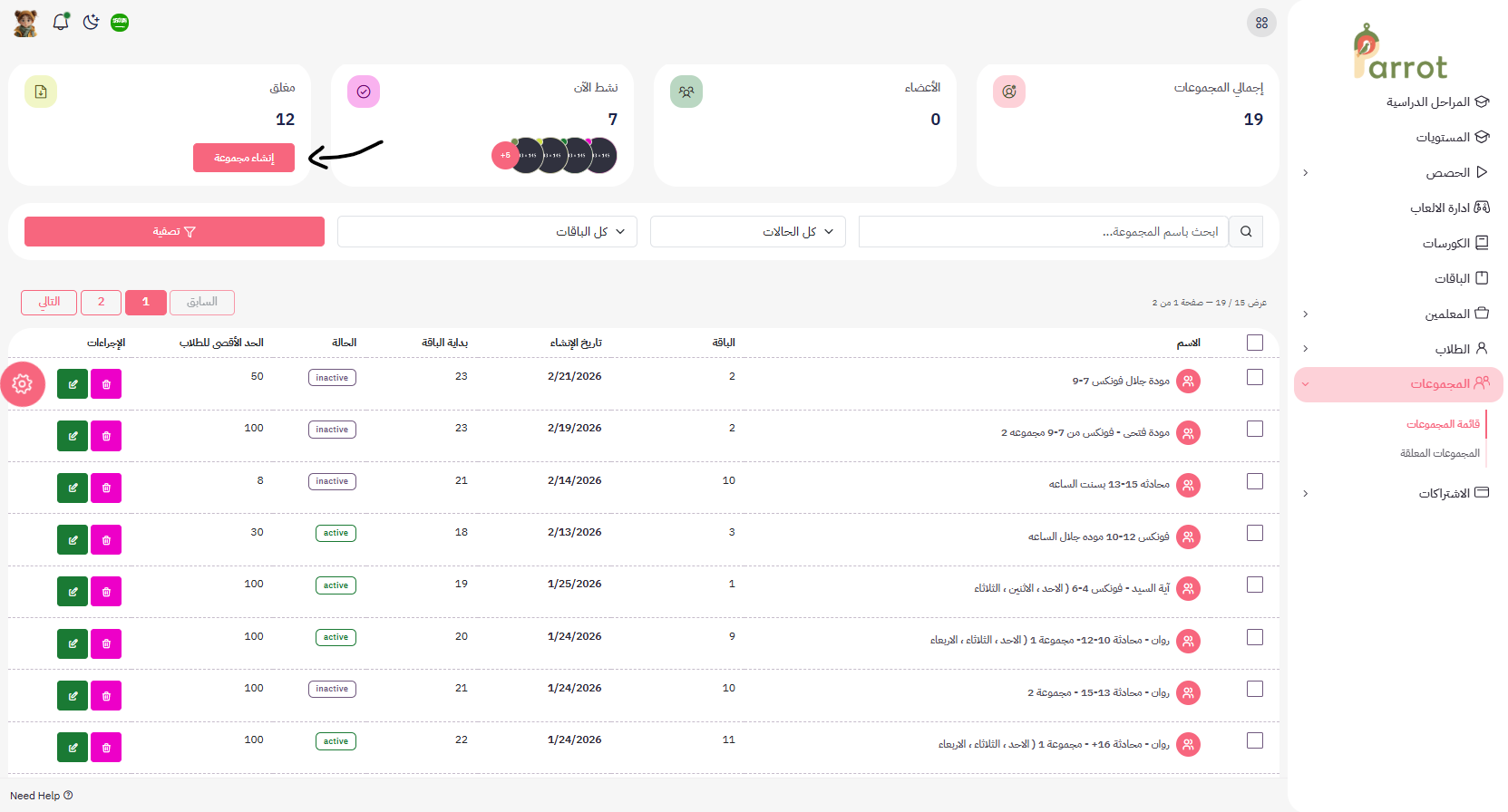 هنا تظهر المجموعات ويمكن حذفها او التعديل عليها من حيث: