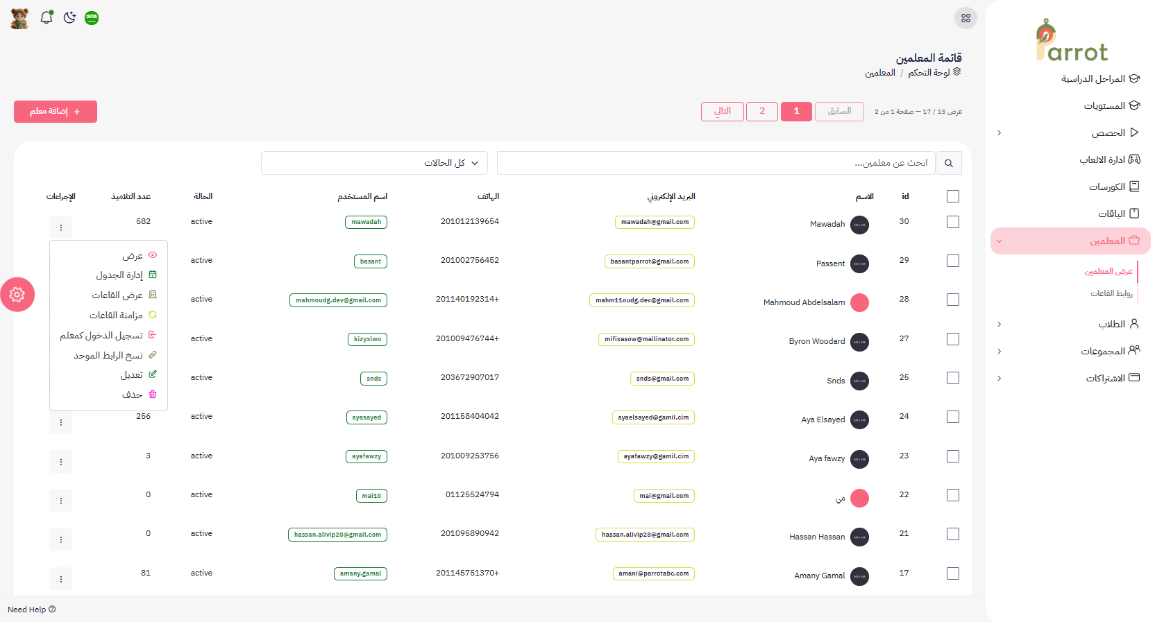 ثم نضغط علي المعلمين » عرض المعلمين "ثم نحدد المعلم المراد اسناد المجموعة اليه"