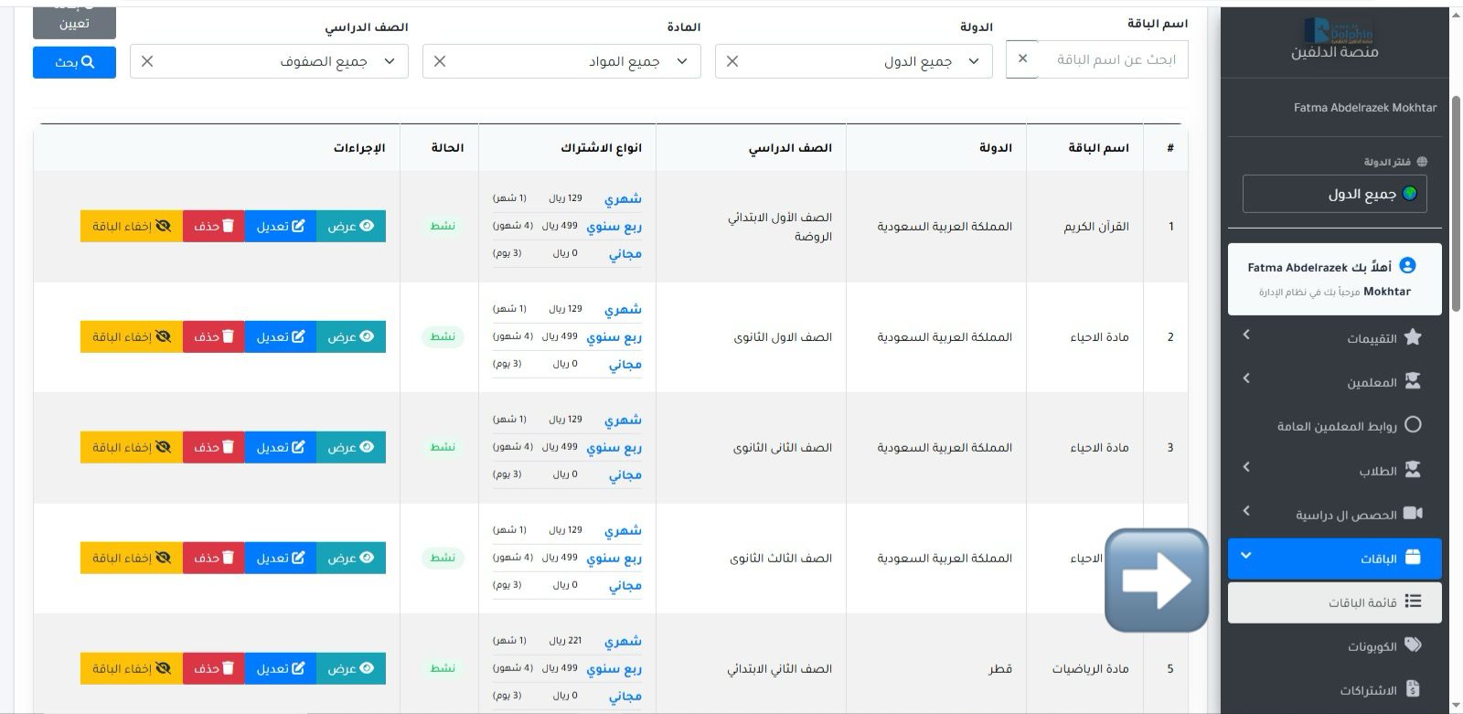 رابعاً يمكن للفريق المختص حذف وإخفاء الباقات عن طريق :
