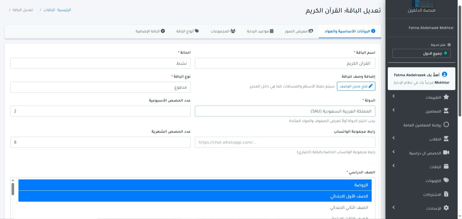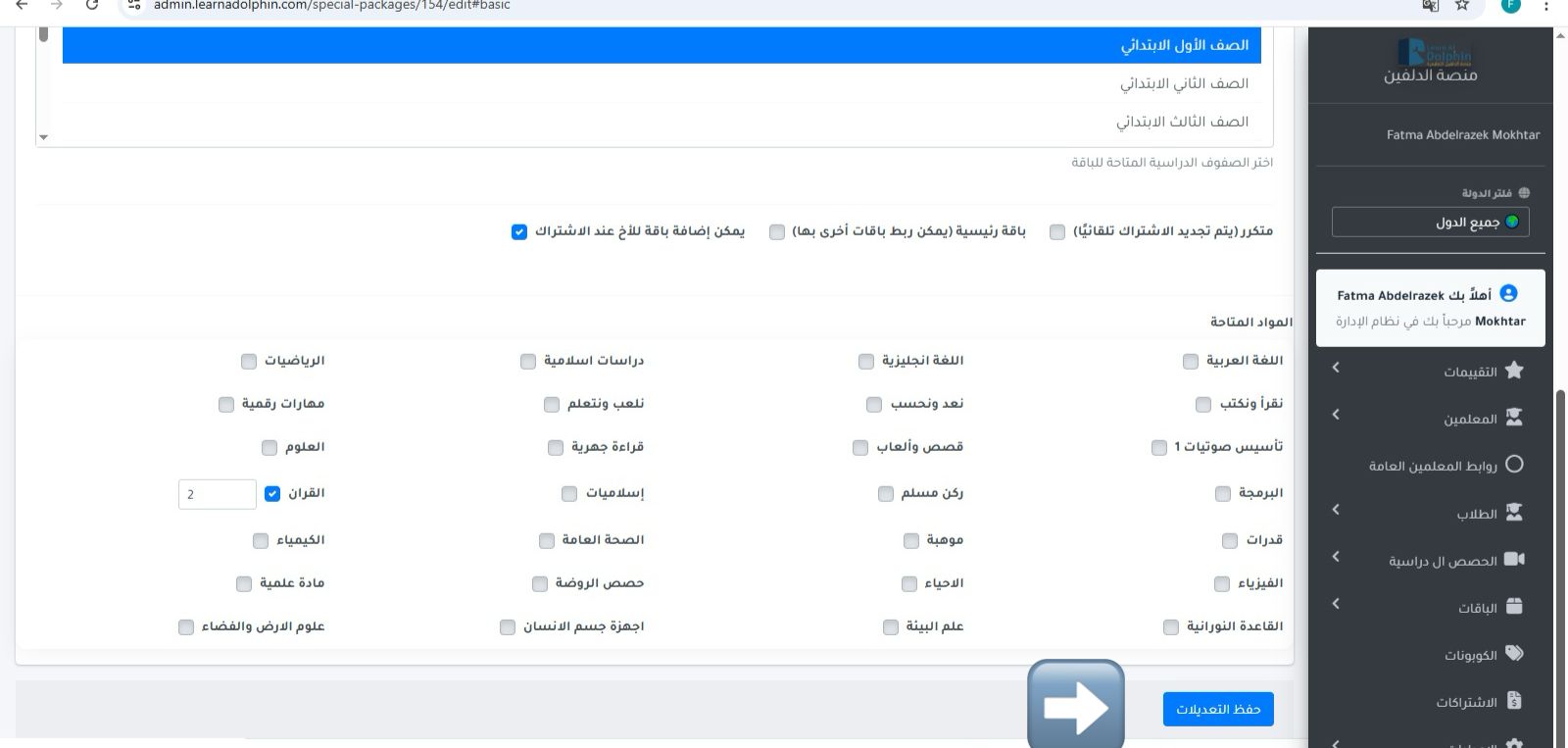 ثالثاً يمكن للفريق المختص التعديل علي جميع تفاصيل الباقات أو إضافت باقات اخري