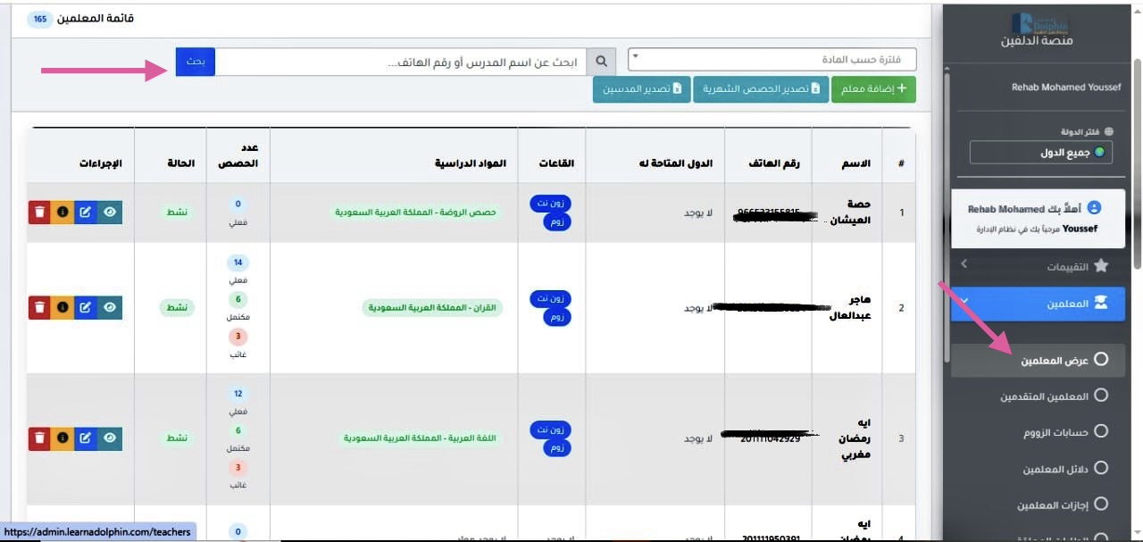 • البحث عن معلم باستخدام اسم المدرس أو رقم الهاتف