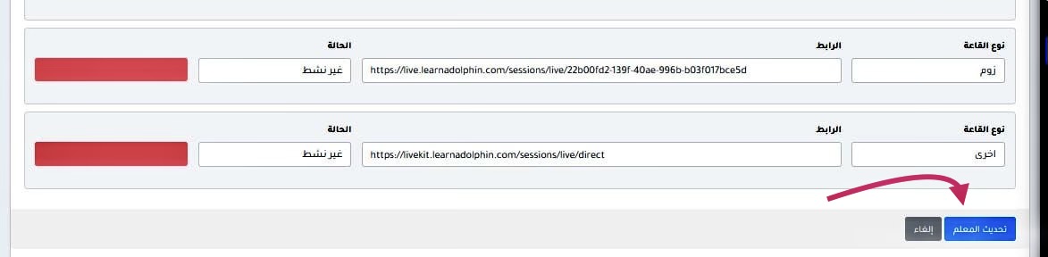 بعد الانتهاء من التعديلات ، اضغط على " تحديث المعلم " لحفظ التعديلات