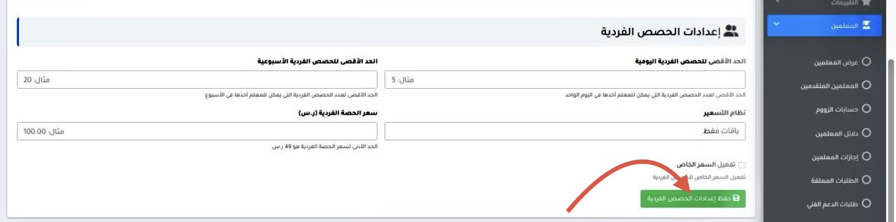 ⚠️ لا تنسَ الضغط على “حفظ إعدادات الحصص الفردية” بعد الانتهاء.